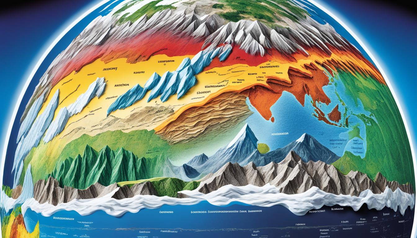 The Earth’s crust is made up of huge plates that move and meet. These movements are caused by the forces of plate tectonics. They lead to amazing sights like tall mountains, big earthquakes, and volcanoes.