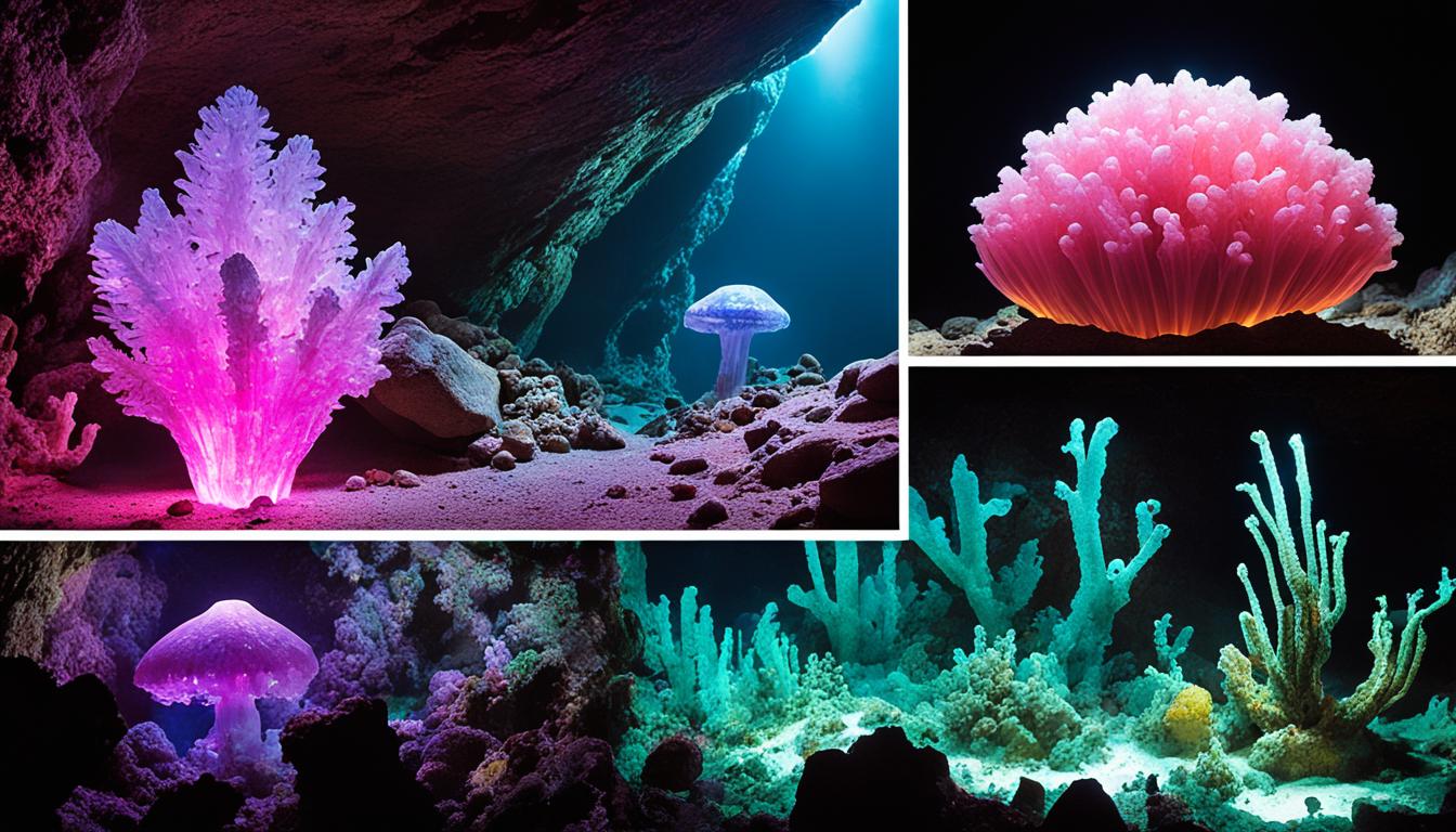 In the deep sea’s dark, some creatures can make their own light. They use bioluminescence for many things, like catching food or keeping away predators. Anglerfish, lanternfish, and deep-sea jellyfish show how life has adapted in the dark ocean.