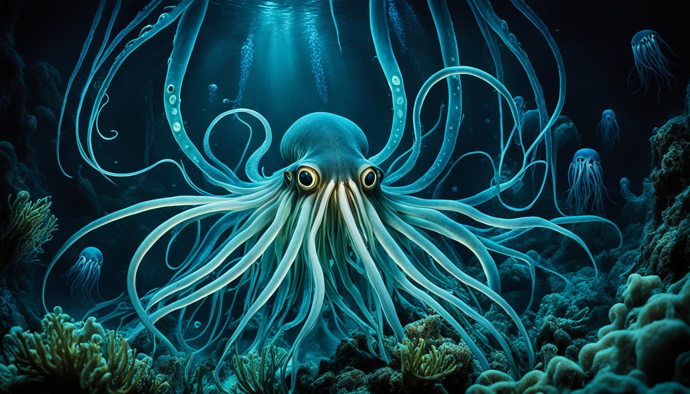 The kraken, a huge sea monster with tentacles, is a famous deep-sea myth. It has been part of Scandinavian stories for a long time. Sailors have reported seeing it, making it a legend.