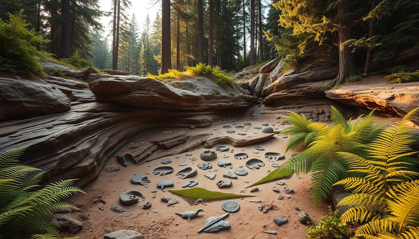 The Burgess Shale in Canada is a standout. It’s filled with perfectly preserved marine creatures from the Cambrian era. This site has changed how we see early animal life, showing us how diverse ancient oceans were.